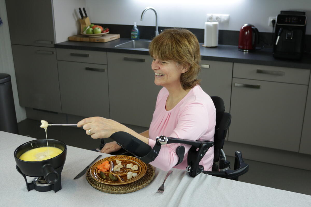 Ja, dit is mogelijk. Met de Armon Edero bepaalt de gebruiker zelf hoeveel ondersteuning hij/zij wil. Als er heel weinig spierkracht is, kan de Armon Edero 100% van het gewicht van de arm compenseren.